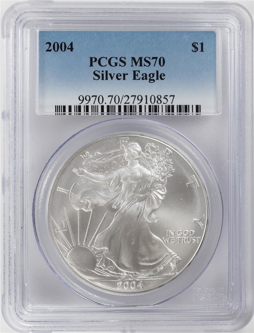 One 2004 $1 American Silver Eagle Coin PCGS MS70. PCGS Graded.