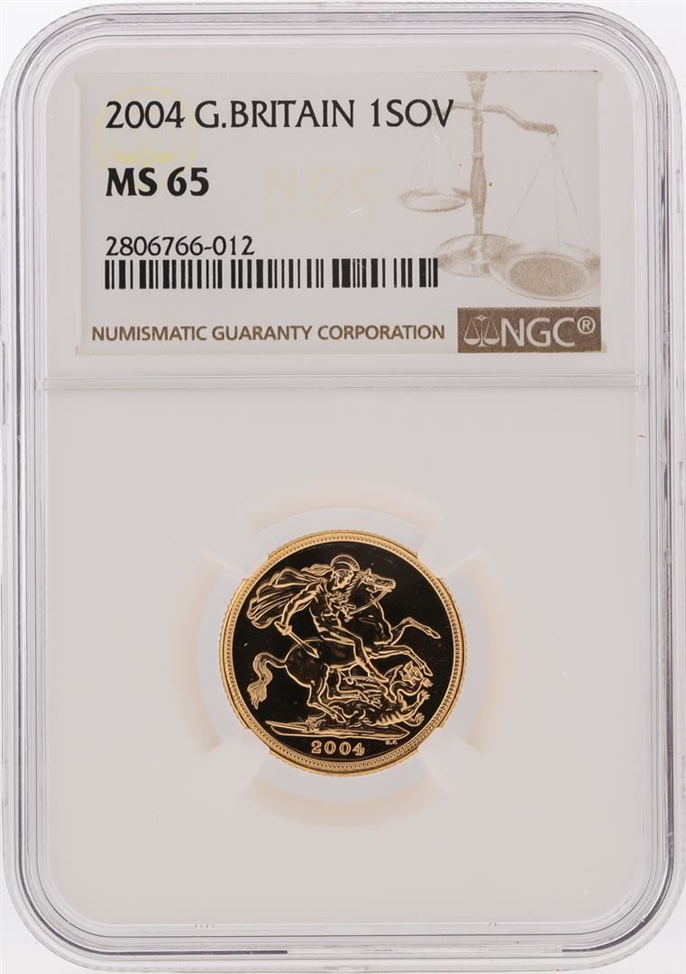 One 2004 1 Sovereign Great Britain Gold Coin NGC MS65. NGC Certified.