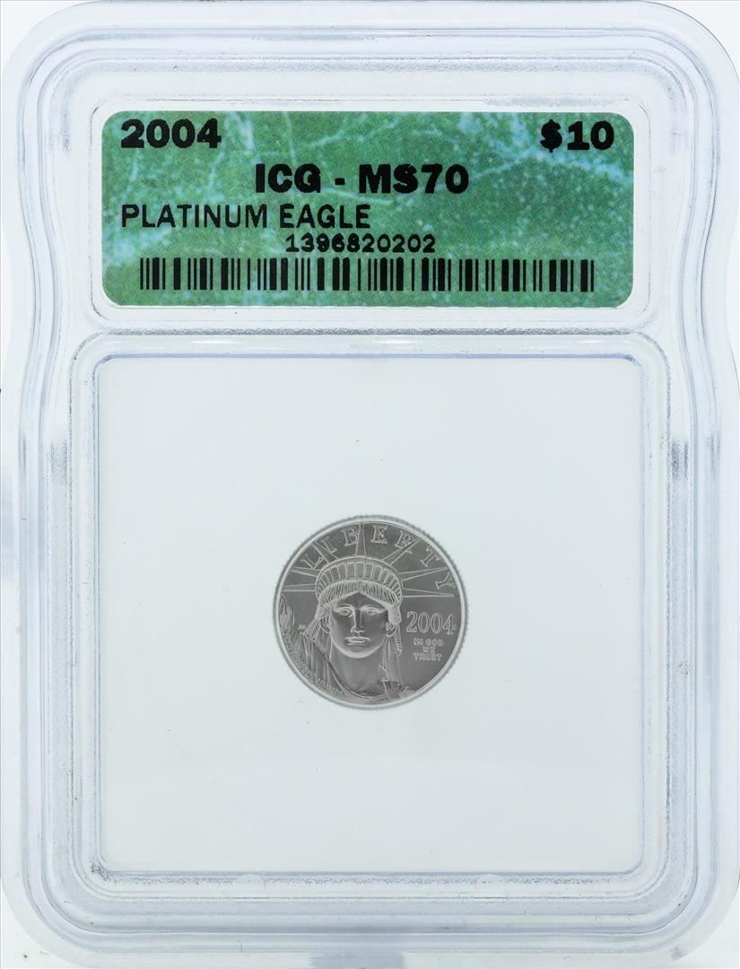One 2004 $10 American Platinum Eagle Coin NGC MS70. NGC Certified.