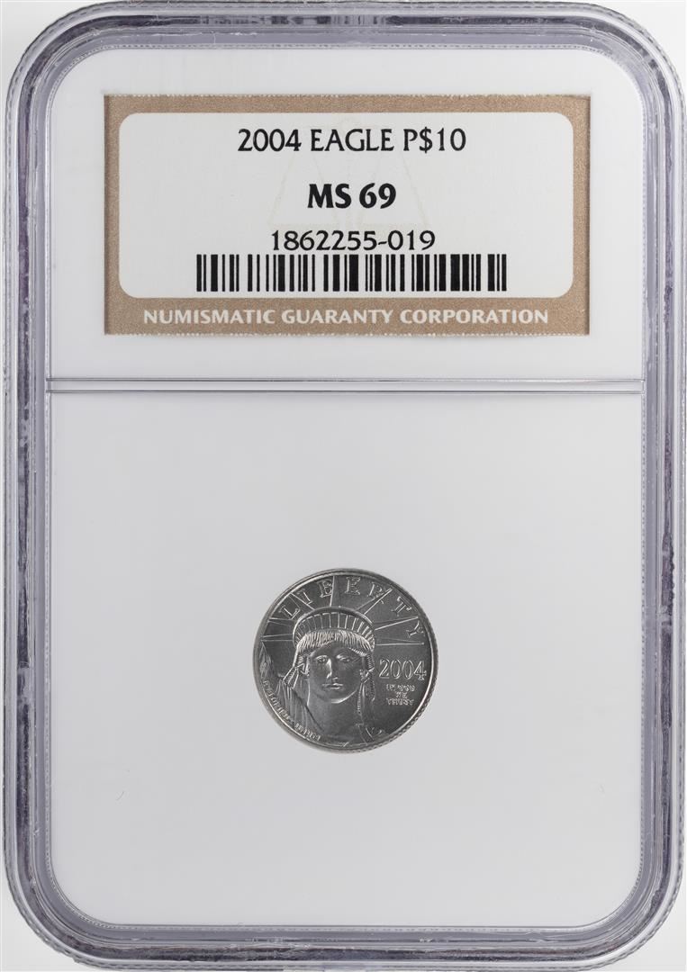 One 2004 $10 Platinum American Eagle Coin NGC MS69. NGC Certified.