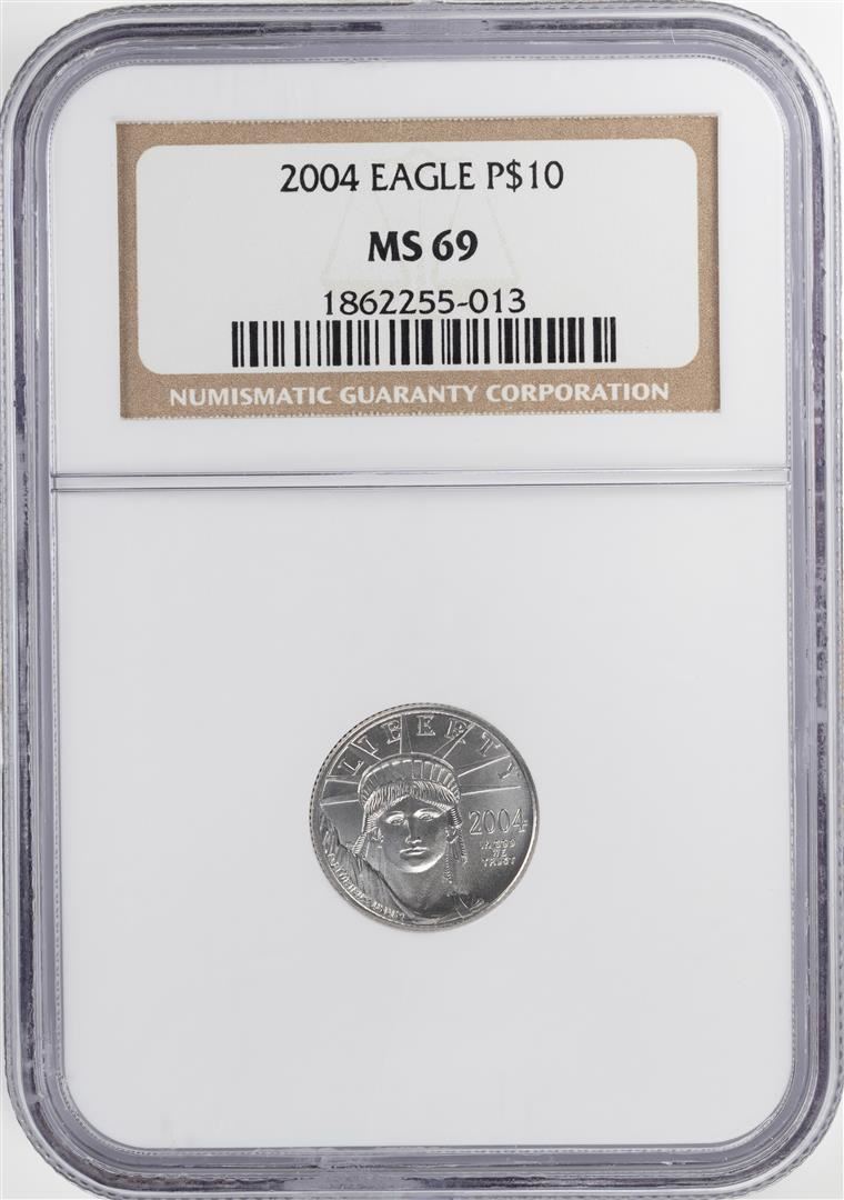 One 2004 $10 Platinum American Eagle Coin NGC MS69. NGC Certified.