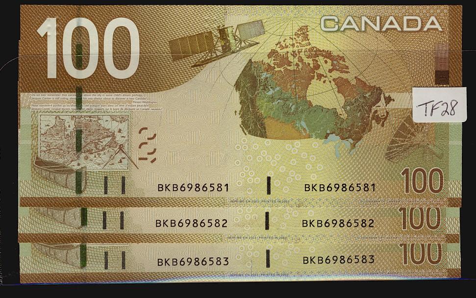 2004 $100 BC-66a #BKB6986581-583. Lot of 3 notes ALL Crisp UNC.