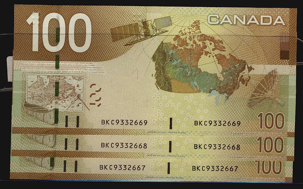 2004 $100 BC-66a #BKC9332667-669. ALL Crisp UNC.