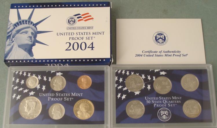 2004 11 Piece US Mint Proof Set * Condition: Mint in original box; crack on one of the cases Includes: Certificate of Authenticity