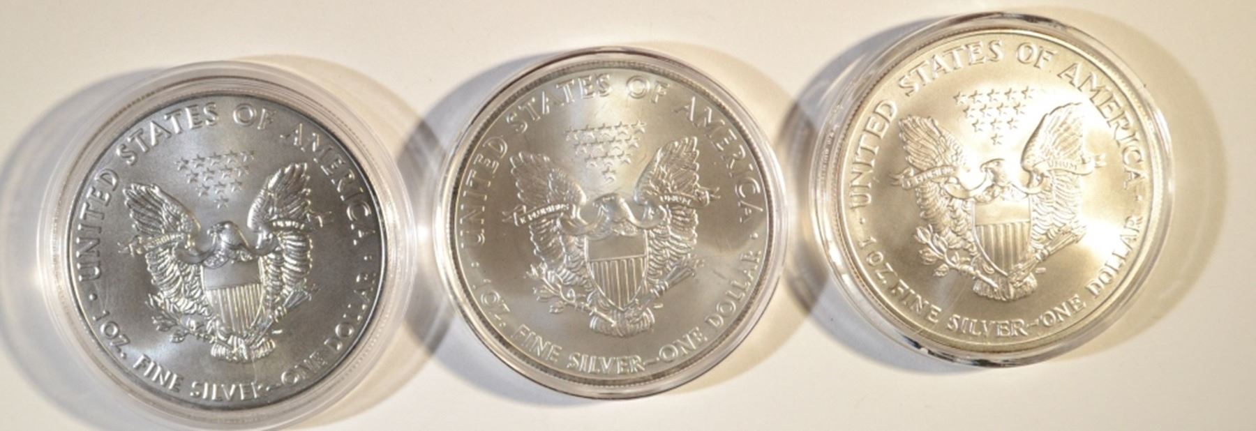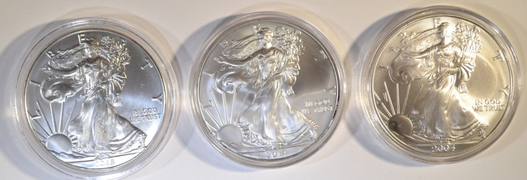 2004, 14, 18 BU AMERICAN SILVER EAGLES IN CAPSULES