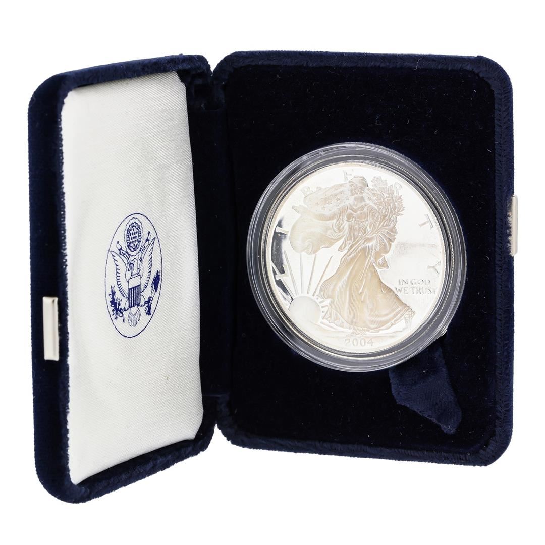 One 2004 1oz American Silver Eagle Proof Coin with Box.