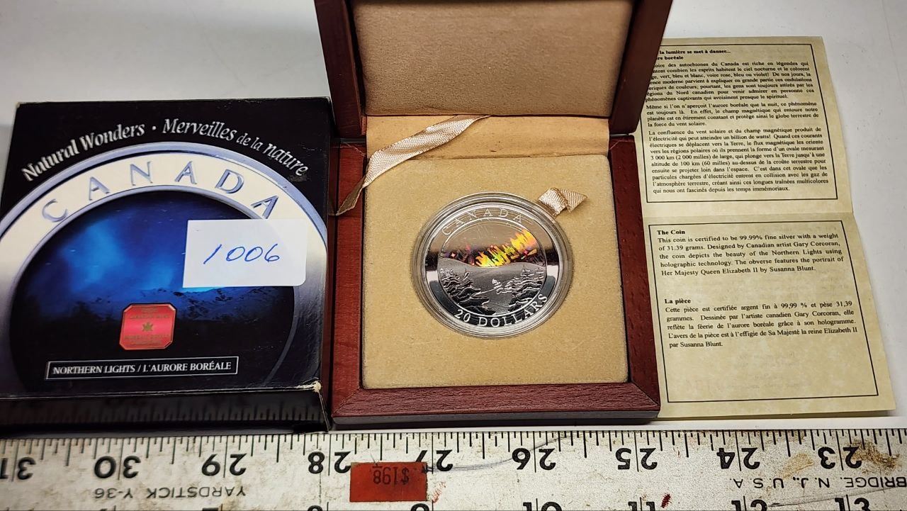 2004 - $20.00 Proof Silver - Aurora Borealis - Coin glitteres with movement to light (Low Cert #1341)