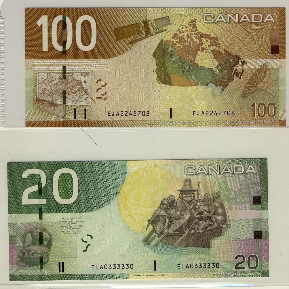 2004 $20 BC64a-i #ELA0333330 RADAR & 2003 $100 BC-66a-i #EJA2242708. Lot of 2 notes both Original UNCS.