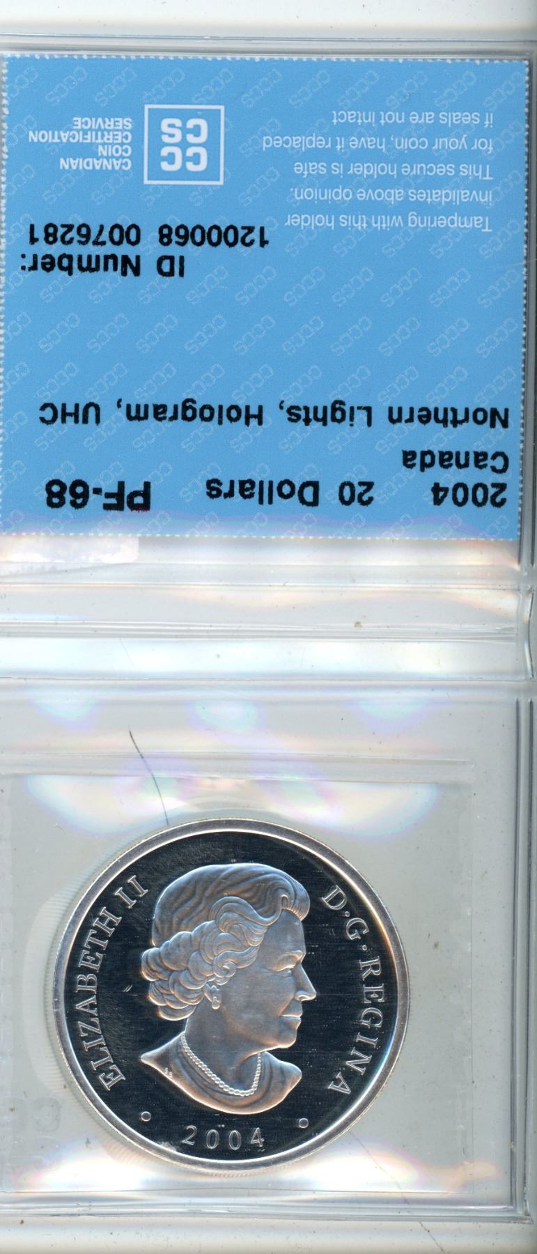 2004 $20 Canadian Dollar PF-68 Northern Lights Hologram CCCS Graded