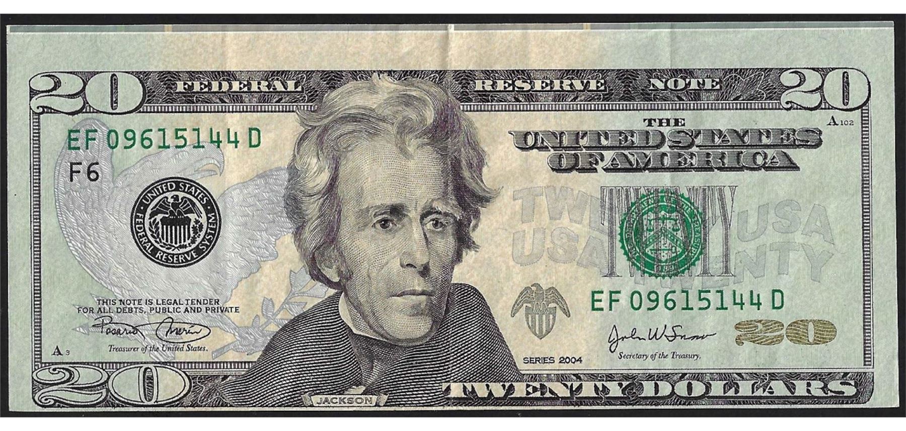One 2004 $20 Federal Reserve Note Cutting Error.