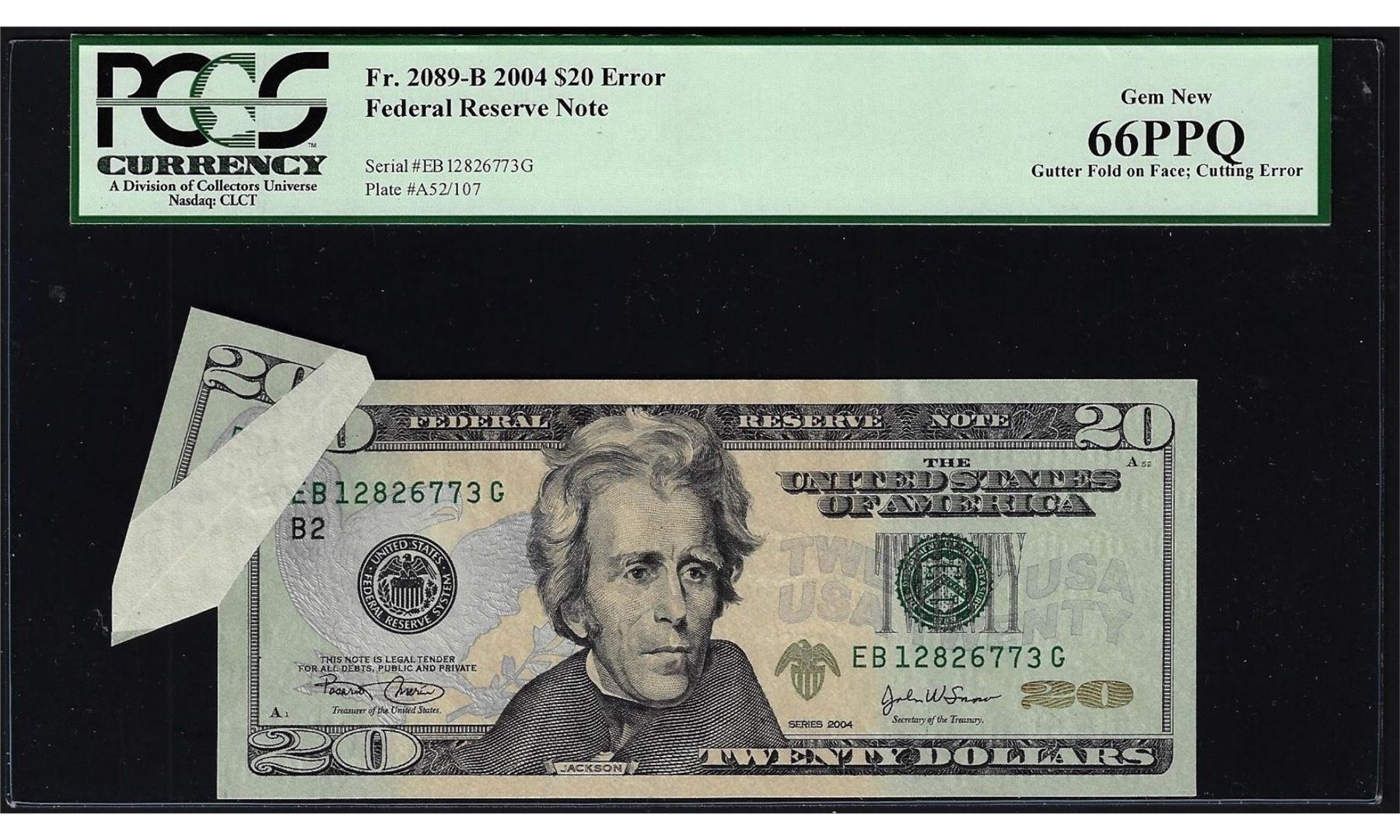 2004 $20 Federal Reserve Note Gutter Fold & Cutting Error PCGS Gem New 66PPQ