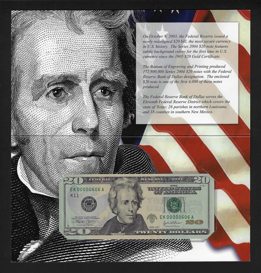 One 2004 $20 Federal Reserve Note Uncirculated LOW SERIAL Number.
