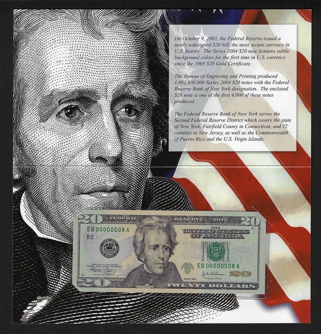One 2004 $20 Federal Reserve Note Uncirculated LOW SERIAL Number.