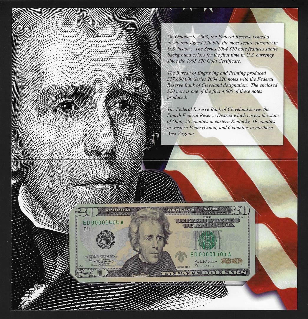 One 2004 $20 Federal Reserve Note Uncirculated LOW SERIAL Number.