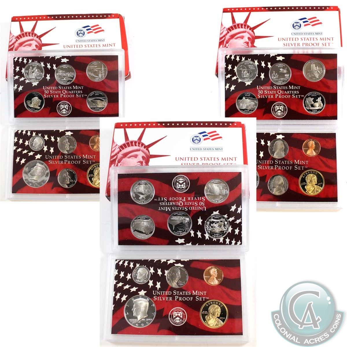 2004, 2005, 2006 United States Mint Silver Proof Sets. 3pcs.