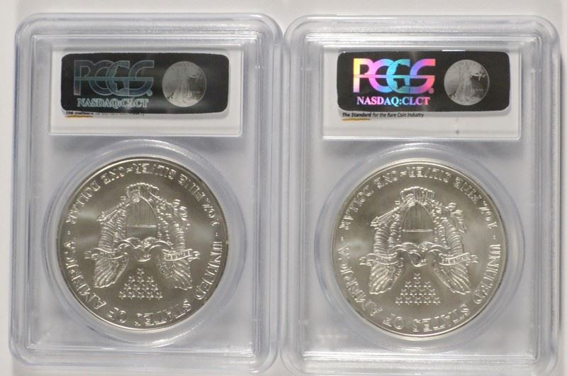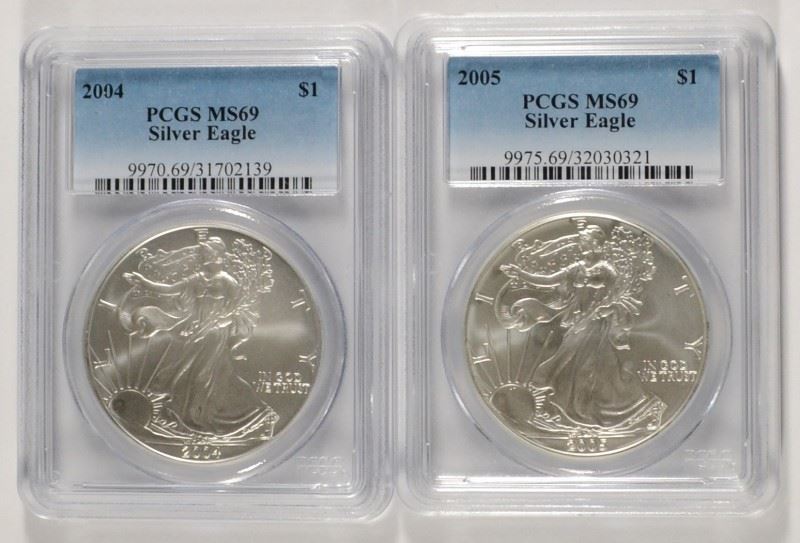 2004 & 2005 AMERICAN SILVER EAGLES, PCGS MS-69