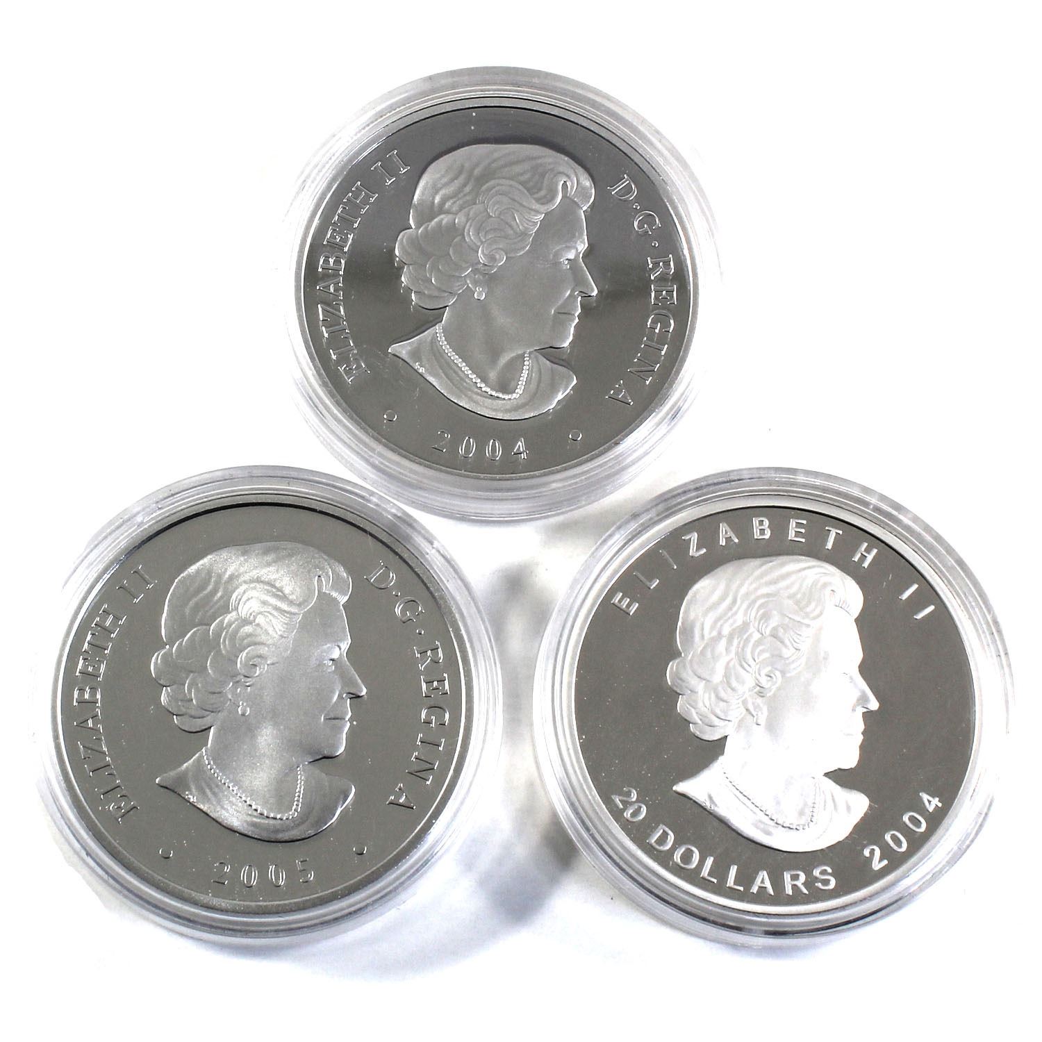 2004 & 2005 Canada $20 Fine Silver Coins in Capsules - 2004 Natural Wonders - Hopewell Rocks, 2004 Lighthouse Series - Sambro Island & 2005 Natural Wonders - Northwest Territories Diamonds (capsules are scratched). 3pcs (TAX Exempt)