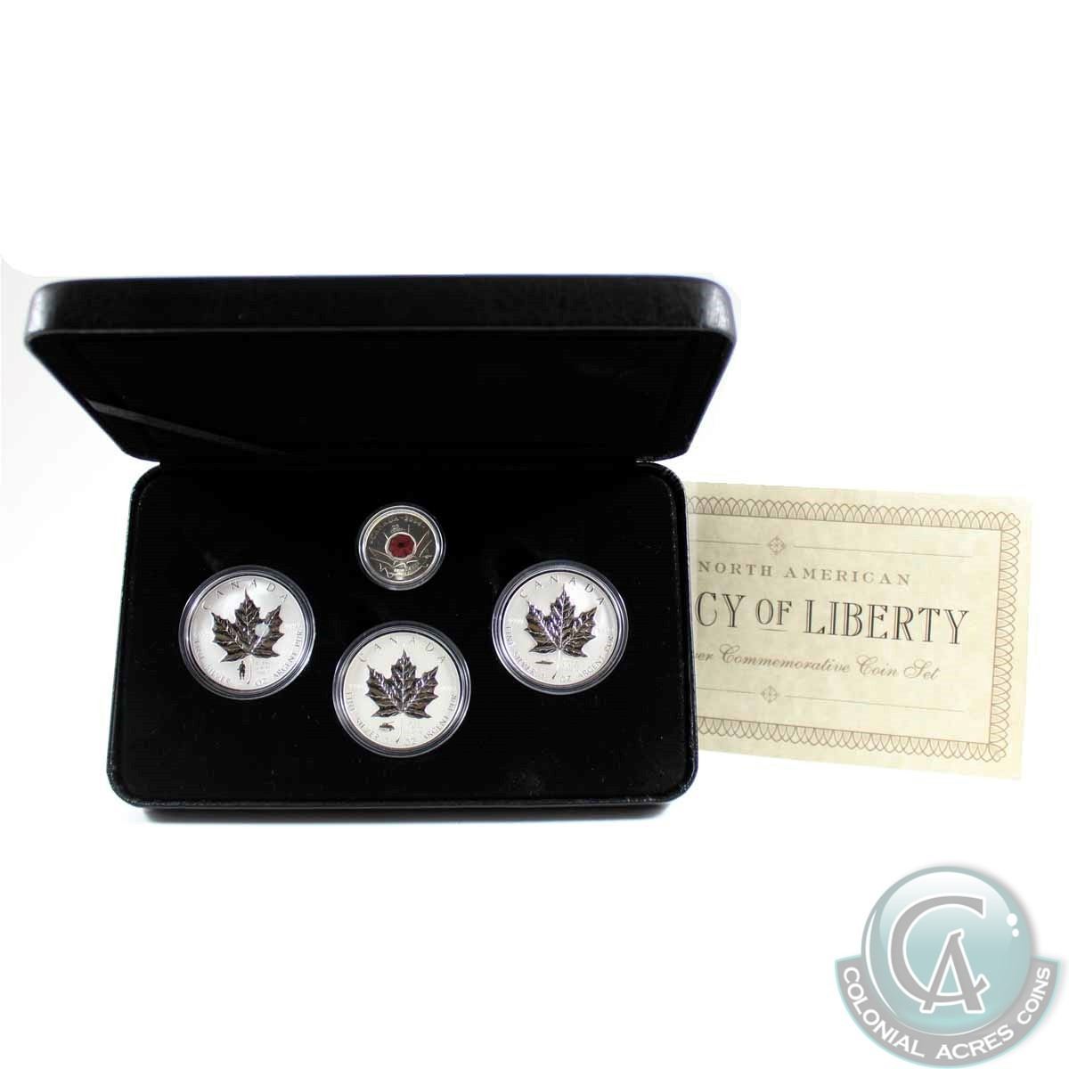 2004-2005 Canada Legacy of Liberty Fine Silver 3-Coin Privy Maple Leaf Set with 2004 Coloured Poppy 25-cent (there is a toning spot on the D-Day privy coin) TAX Exempt