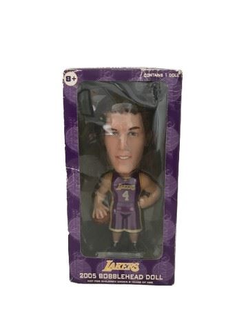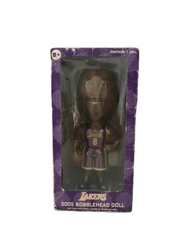 A collection of 2004-2005 Lakers bobble head dolls. Includes six dolls: Walton, Mihm, Bryant, Butler, and Odom. The lineup is listed on the back of each box detailing which one came out during each specific week. Comes with a plastic display stand to hold the five bobble heads. This was a Carl's Jr. partnership with the Lakers in 2005 to release a promotional bobbleheads collection.
