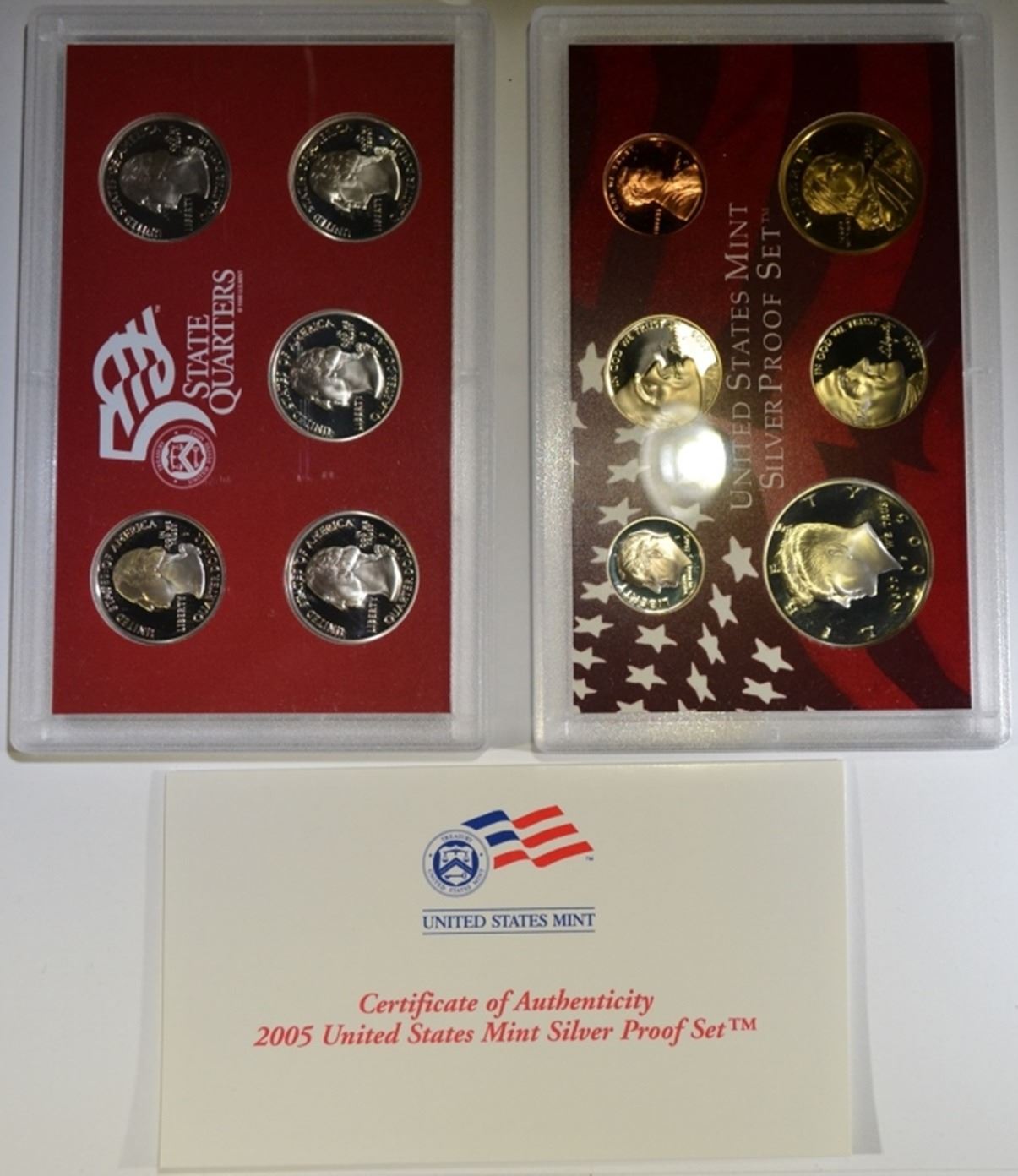2004, 2005 U.S. SILVER PROOF SETS ORIG PACKAGING