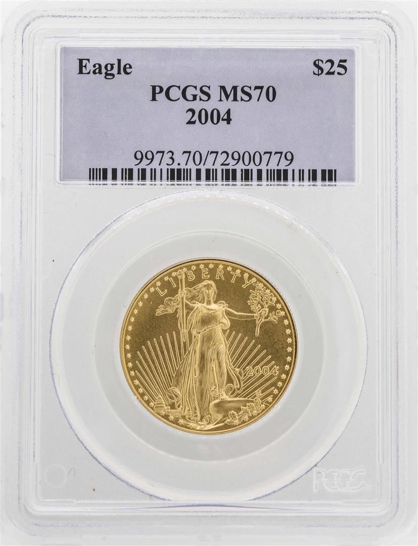 One 2004 $25 American Gold Eagle Coin PCGS MS70. PCGS Graded.