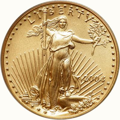 2004 $25 Gold Eagle. PCGS graded MS-69. A near perfect ½ oz. gold coin (PCGS # 9973).