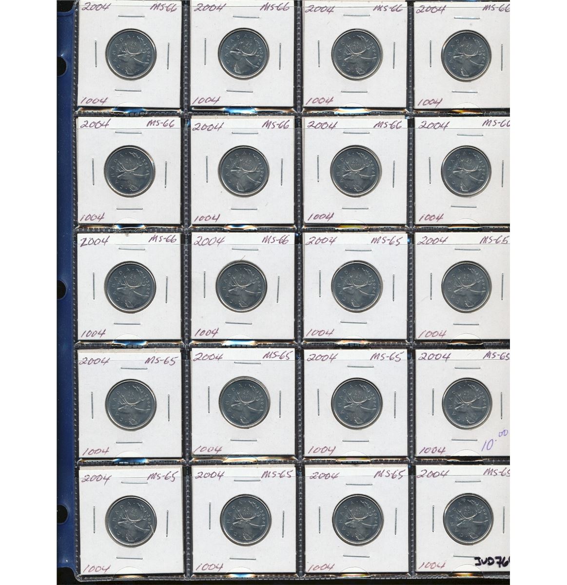 2004 25¢ Partial Roll Lot; includes 2004P(40), 2004P First Settlement(40) & 2004 Poppy(20) pieces all in 2x2's MS63 to MS65. A nice lot that should be inspected.
