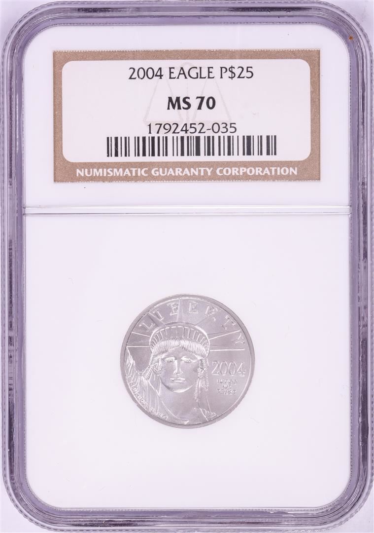 One 2004 $25 Platinum American Eagle Coin NGC MS70. NGC Certified.