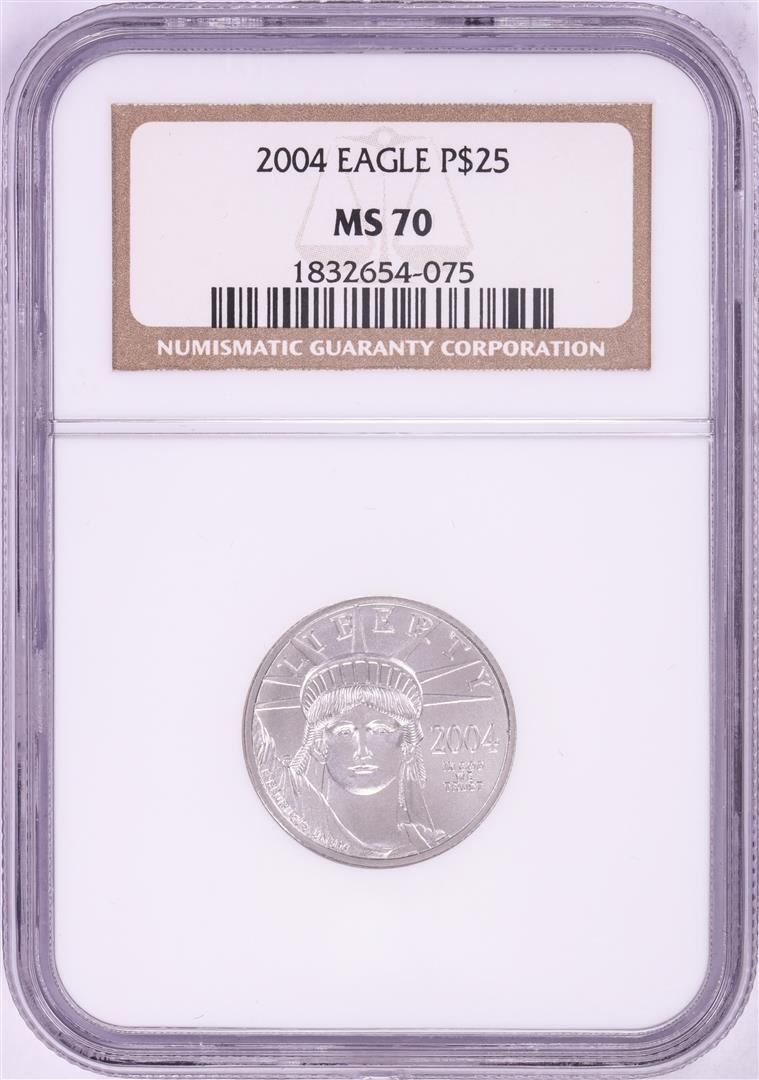 One 2004 $25 Platinum American Eagle Coin NGC MS70. NGC Certified.