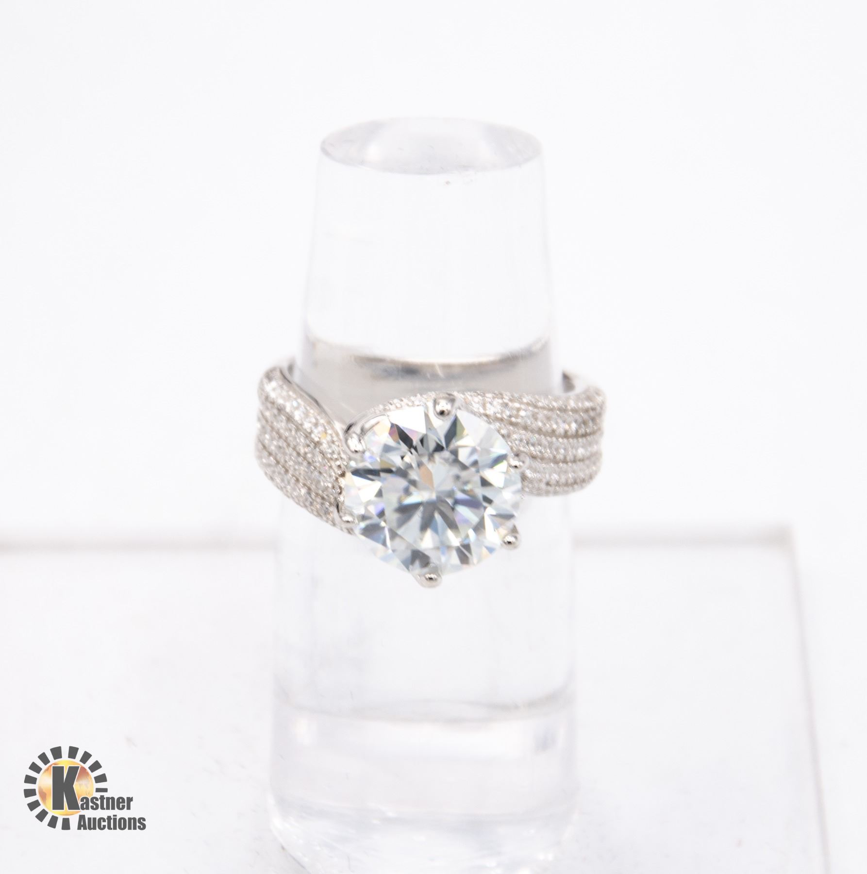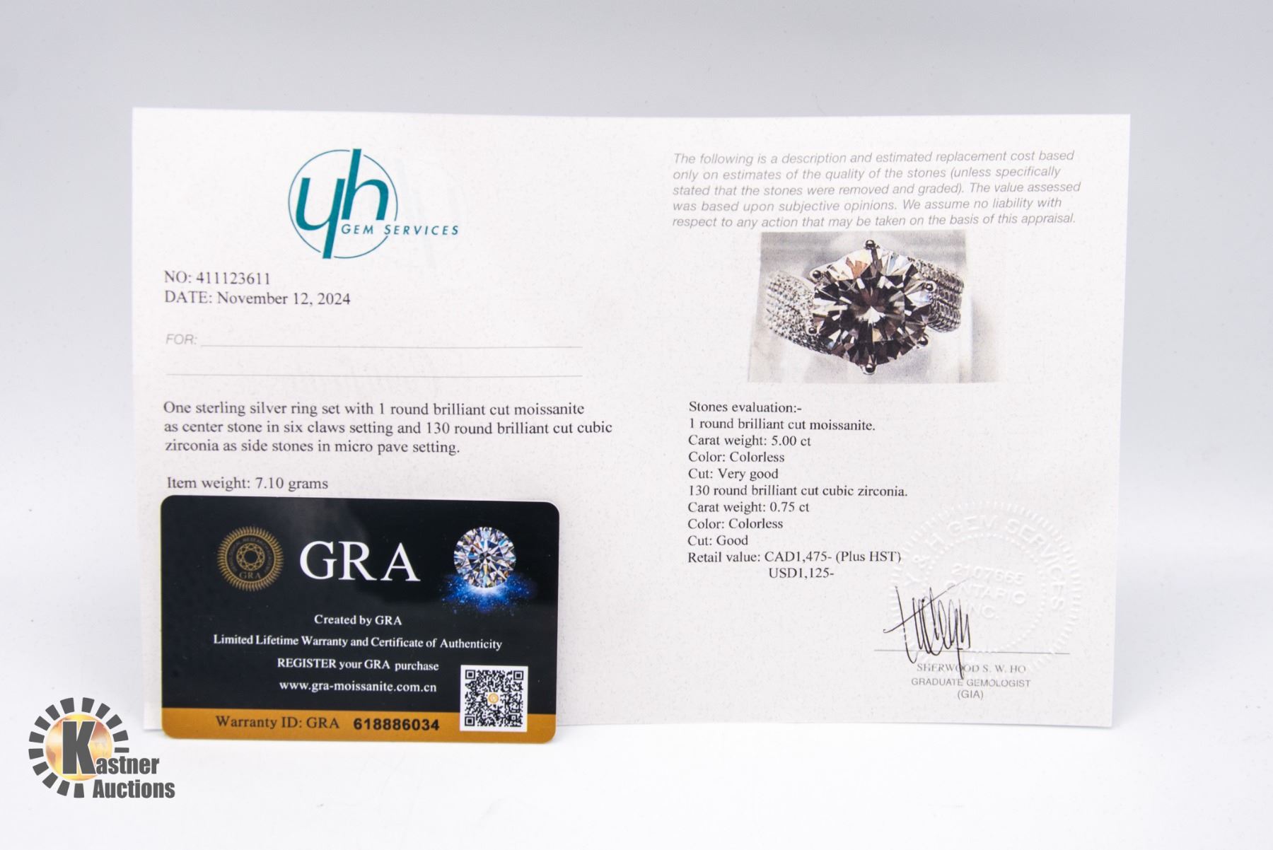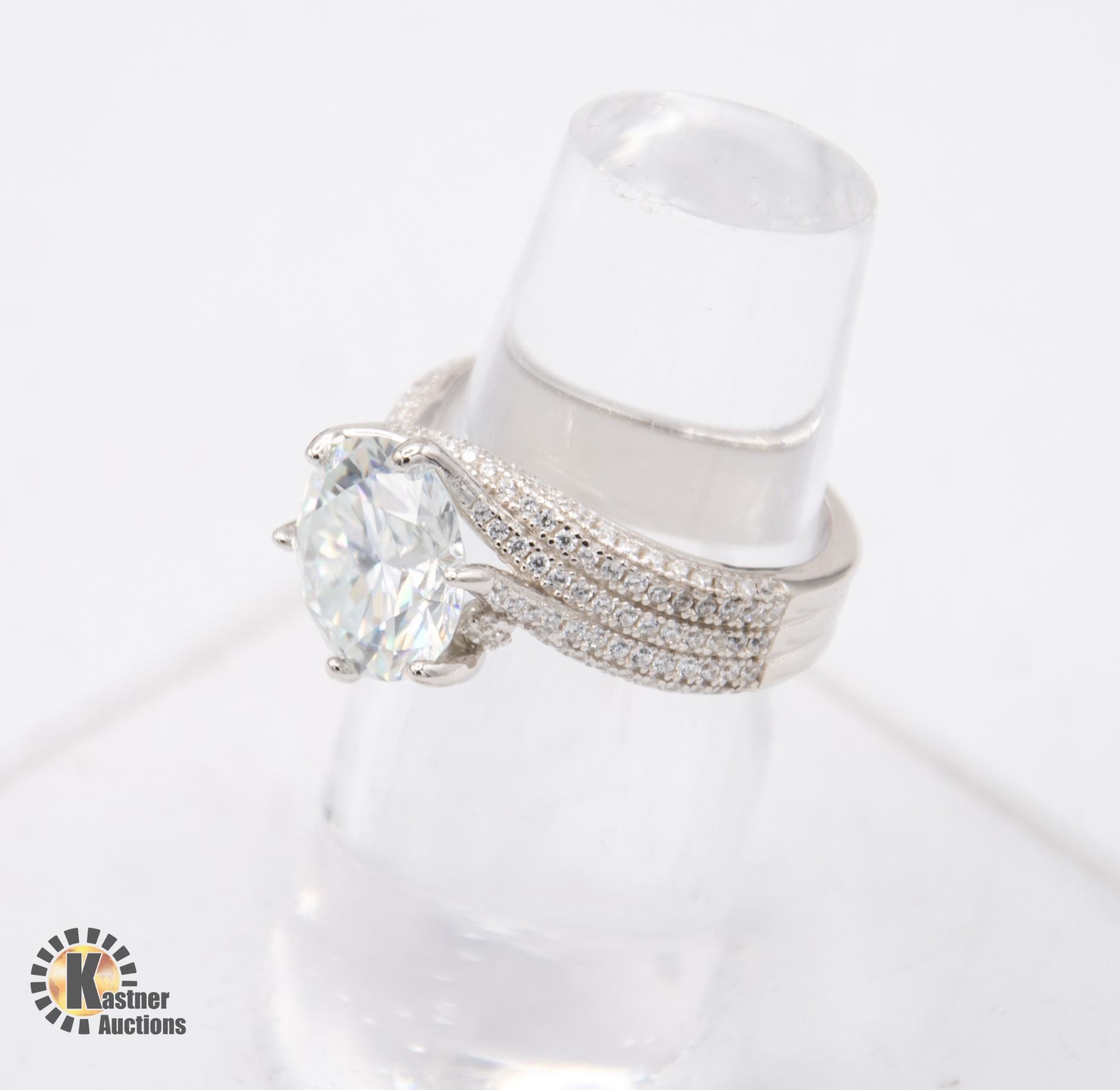 CUT MOISSANITE STONE VVS D COLOR SET WITH 130 ROUND BRILLIANT CUT CZ’S SET IN 925 SILVER RING SIZE 8 RETAIL VALUE $1,475.00 COMES WITH GIFT BOX