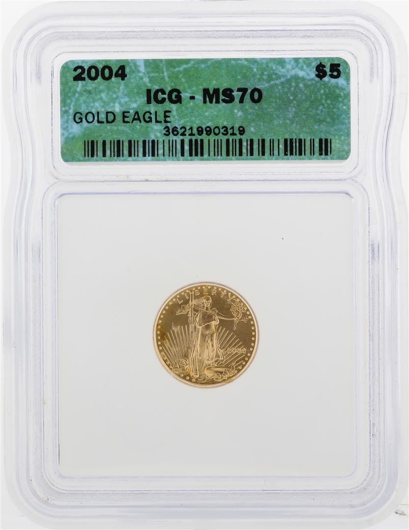 One 2004 $5 American Gold Eagle Coin ICG MS70. ICG Certified.