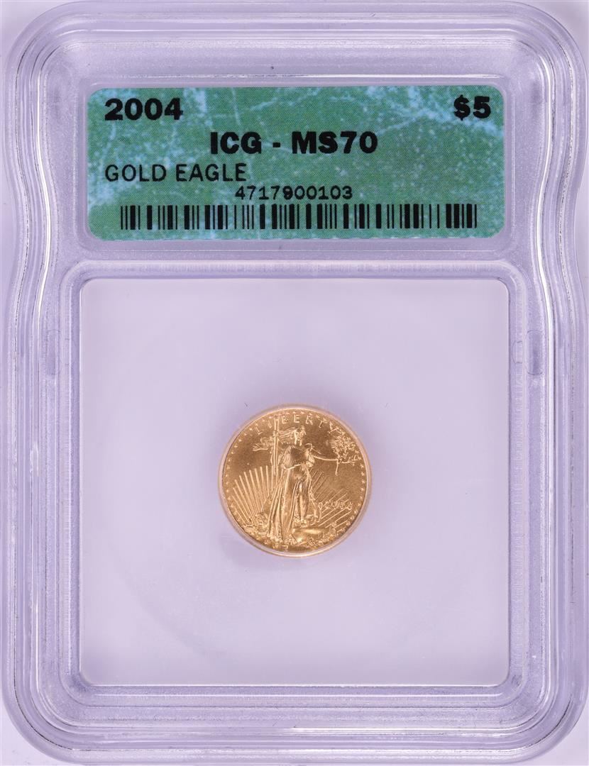One 2004 $5 American Gold Eagle Coin ICG MS70. ICG Certified.
