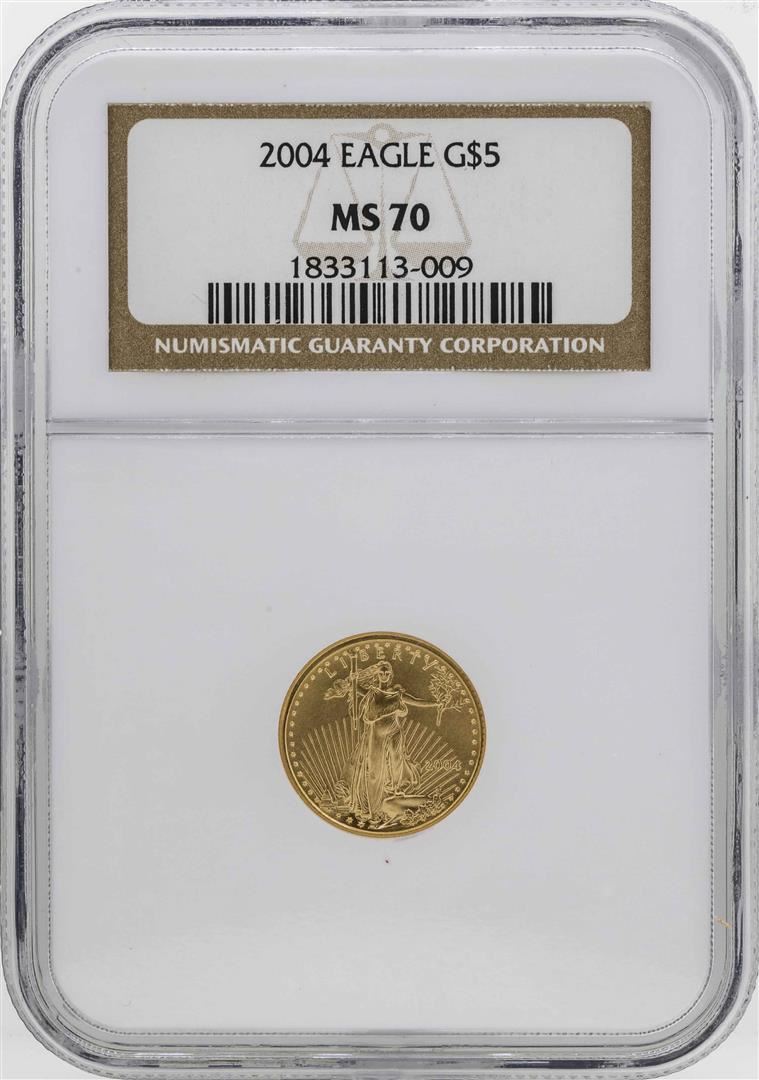 One 2004 $5 American Gold Eagle Coin NGC MS70. NGC Certified.