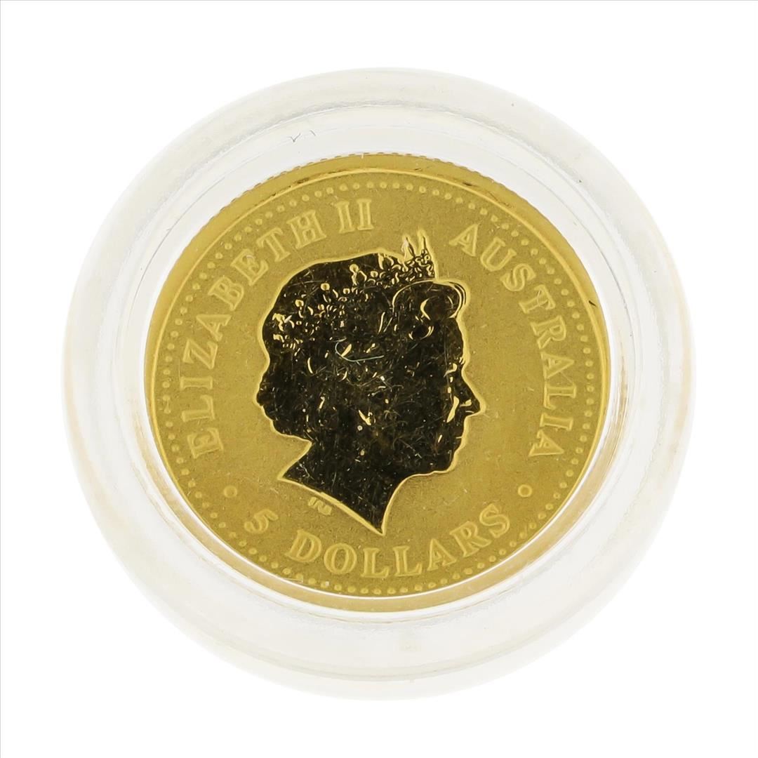 One 2004 $5 Australia 1/20 oz Lunar Year of the Monkey Gold Coin.