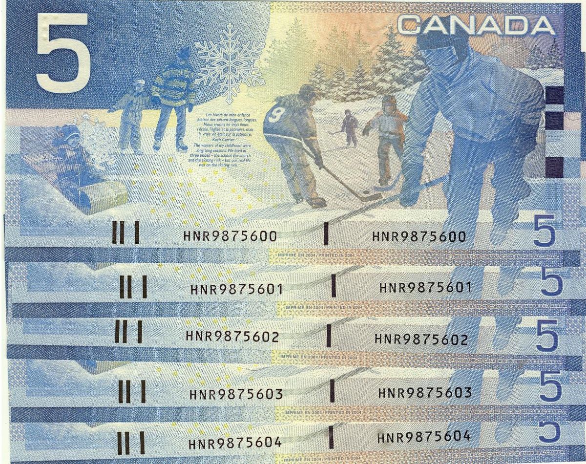 2004 $5 BC-62bA #HNR9875600-601-602-603-604, Lot of 5 consecutive notes. All UNC
