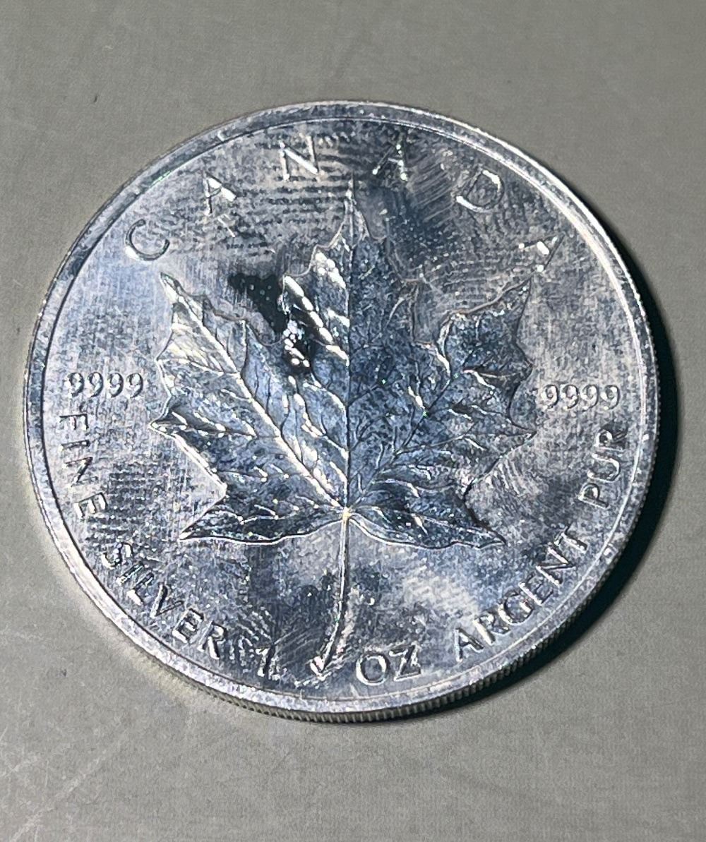 2004 $5 Canadian Maple, 1oz, 0.999 Fine Silver Round.