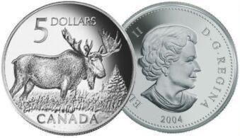 2004 $5 Dollar Majestic Moose - Pure Silver Coin
