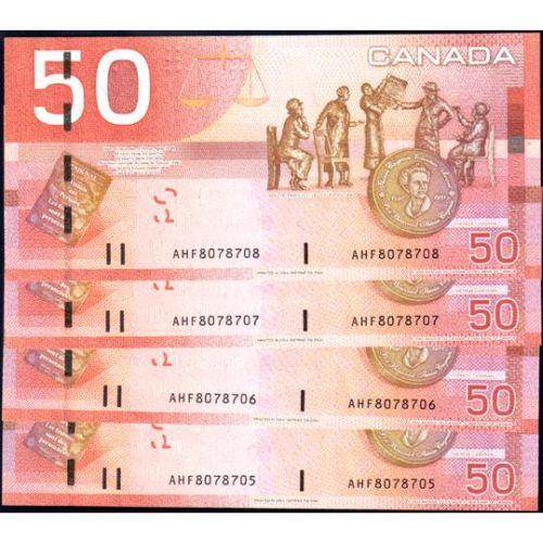 2004 Fifty Dollars Jenkins-Dodge, BC-65a, Four Consecutive Serial Numbers, AHF8078705 to Three Digit Radar AHF8078708, AU-Uncuirculated or better