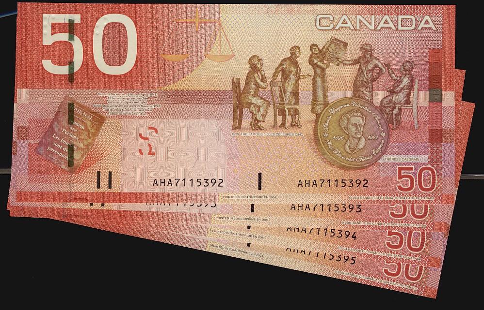 2004 $50 BC-65a #AHA7115392-395. Lot of four notes all UNC.