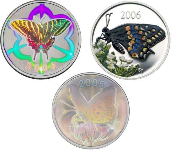 2004 50¢ Tiger Swallowtail Butterfly(2), 2005 Fritillary butterfly & 2004 Tier Swallow Tail. Lot of 4 pcs.