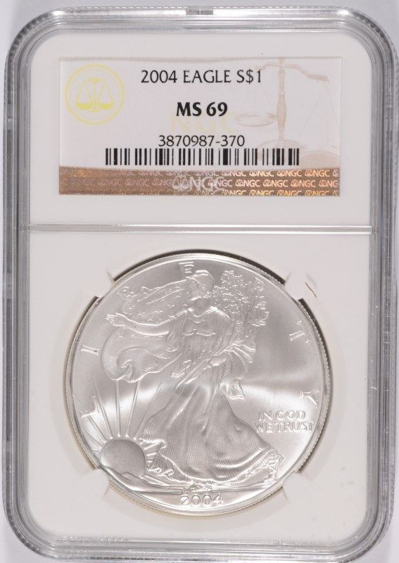 2004 AMERICAN SILVER EAGLE, NGC MS-69 NICE!