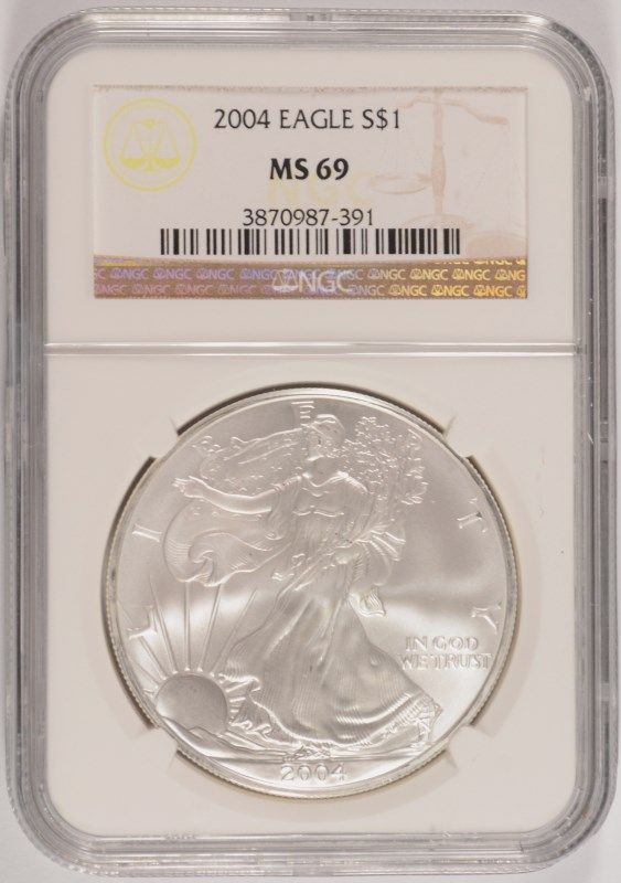 2004 AMERICAN SILVER EAGLE, NGC MS-69 NICE!