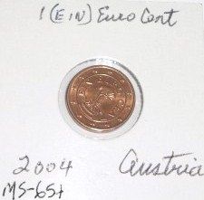2004 AUSTRIA 1 EURO CENT COIN *RARE HARD TO FIND MS-65+ HIGH GRADE* COIN CAME OUT OF PRIVATE EURO COIN COLLECTION!! ***Coin, Currency & All Items Listed in this auction - Grades, Conditions and Values are not Safe Deposit Coins LLC Responsibilty. Grades, Condition and Values are determined by Consigner(s) & Buyers ONLY***