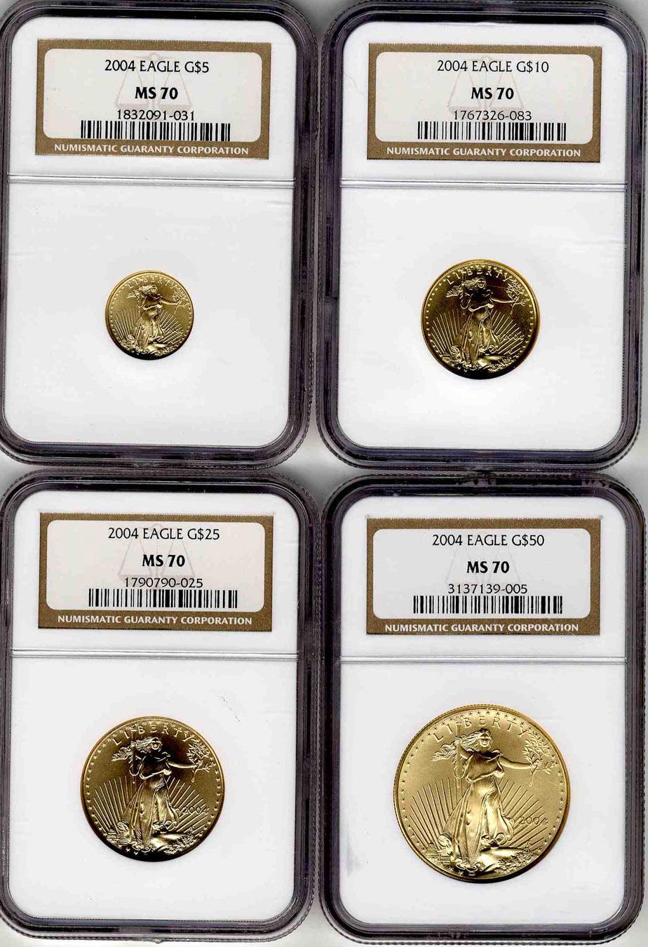2004 American Eagle 4 Coin Set -- NGC Graded MS70