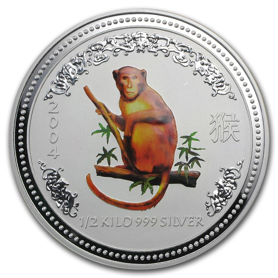 2004 Australia 1/2 kilo Silver Year of the Monkey BU (Colorized)