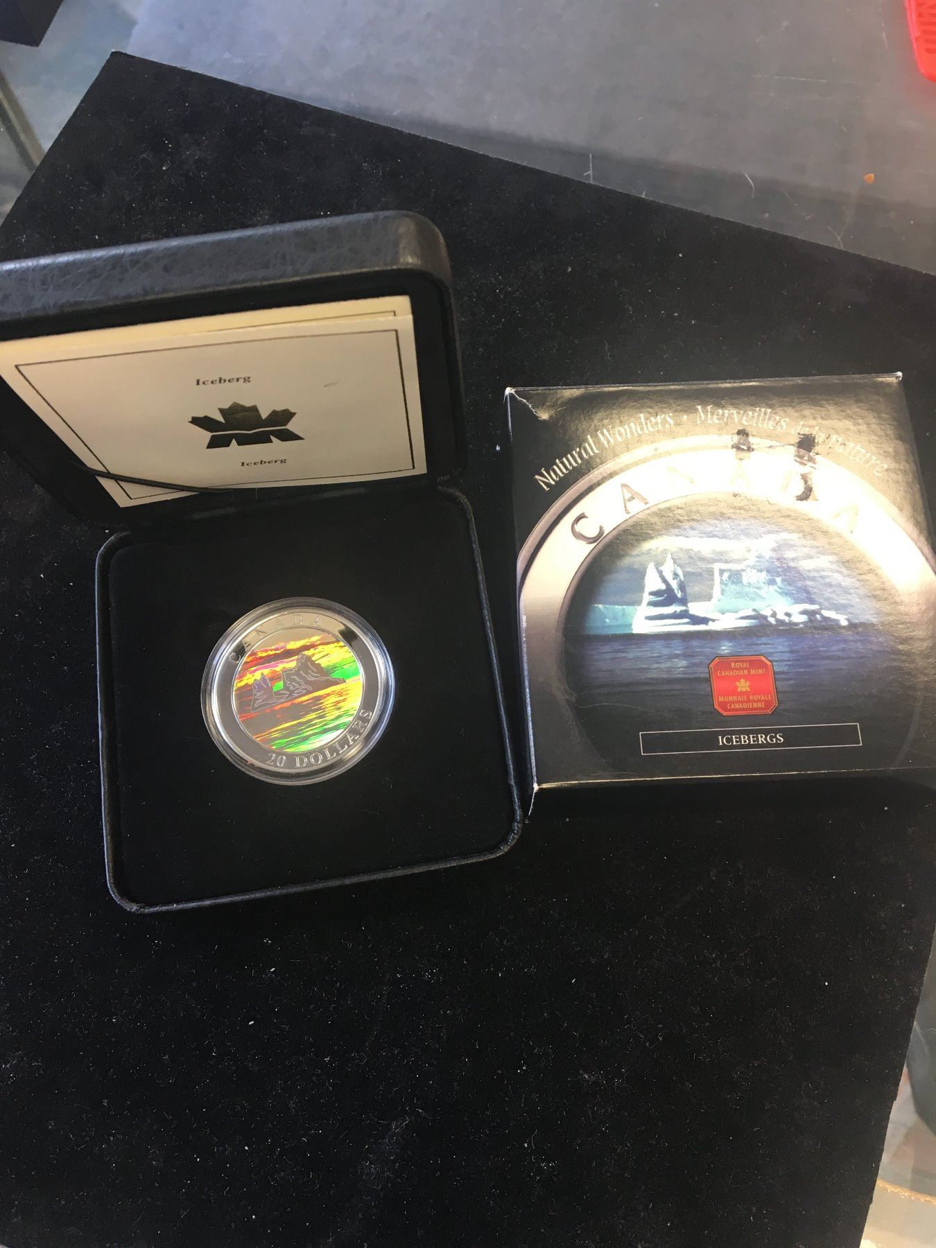 NICE HOLOGRAPHIC ICEBURG SILVER COIN! WITH ITS ORIGINAL CASE AND DESCRIPTION CARD AND OUTER BOX..