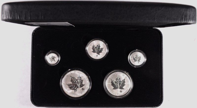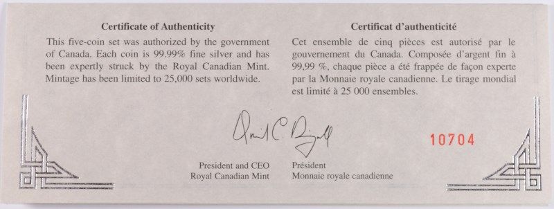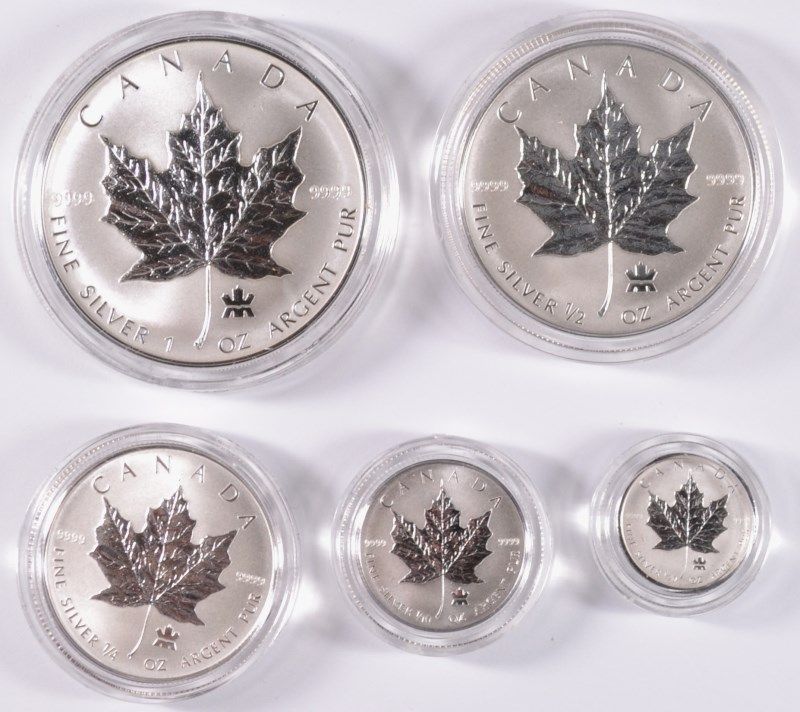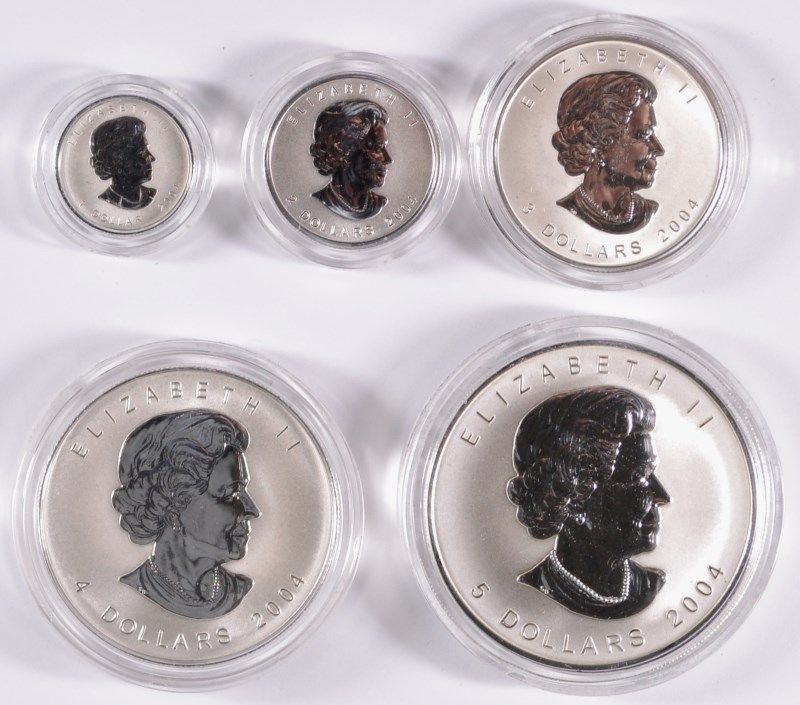 2004 CANADIAN SILVER MAPLE LEAF ( 5 ) PIECE SET ORIGINAL BOX AND COA,