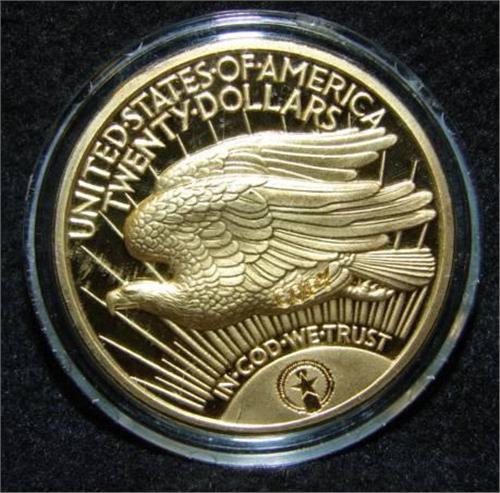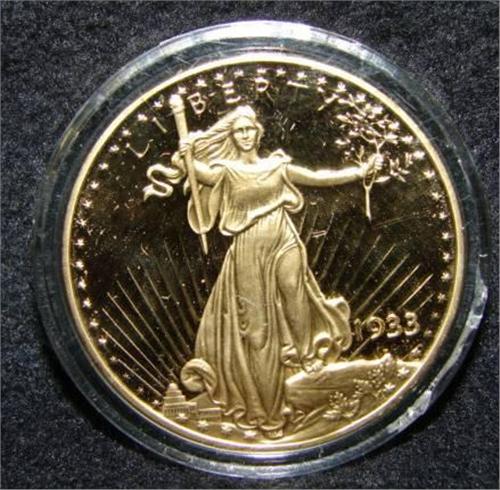 2004 COPY OF 1933 $20 U.S. LIBERTY GOLD COIN. Marked on side “Commonwealth N. Mariana Islands-USA Coin Rarities-1933 Double Eagle-2004”.