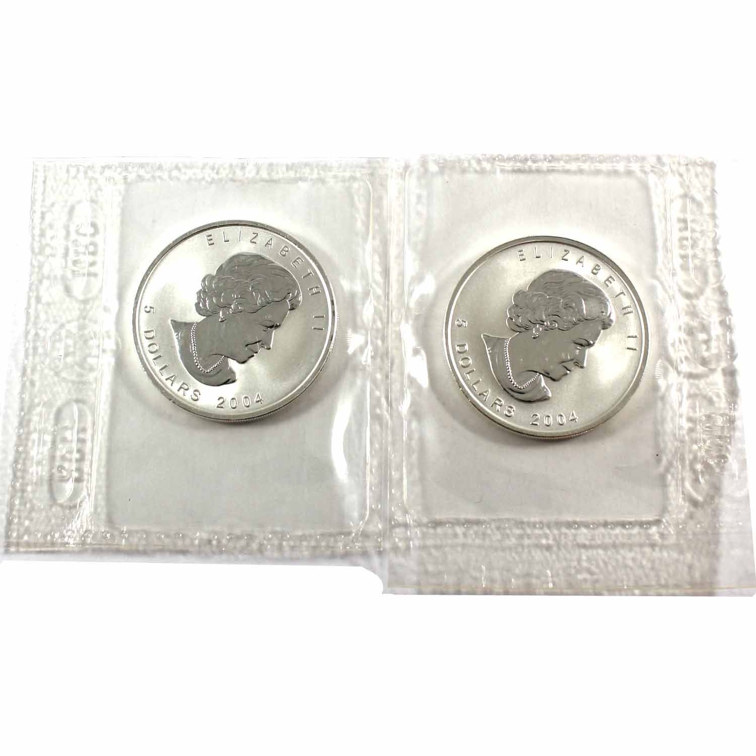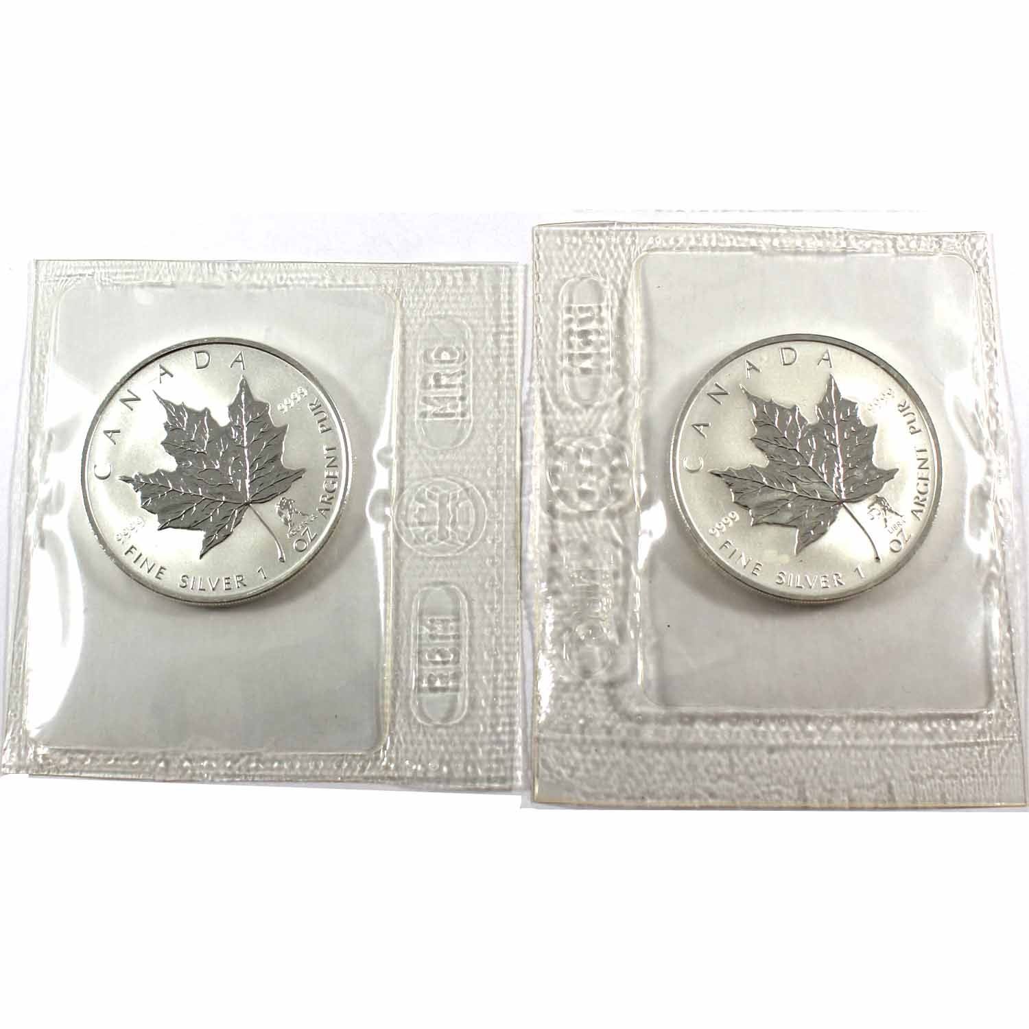 2004 Canada 1oz Libra & Aquarius Privy Mark Maple Leafs in Sealed Mint Plastic (Libra toned, Aquarius lightly toned). 2pcs (TAX Exempt)
