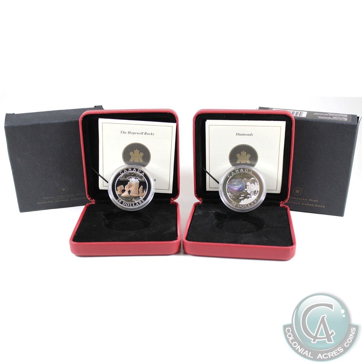 2004 Canada $20 Natural Wonders - Hopewell Rocks & 2005 NWT Diamonds Fine Silver Coins. 2pcs (TAX Exempt)